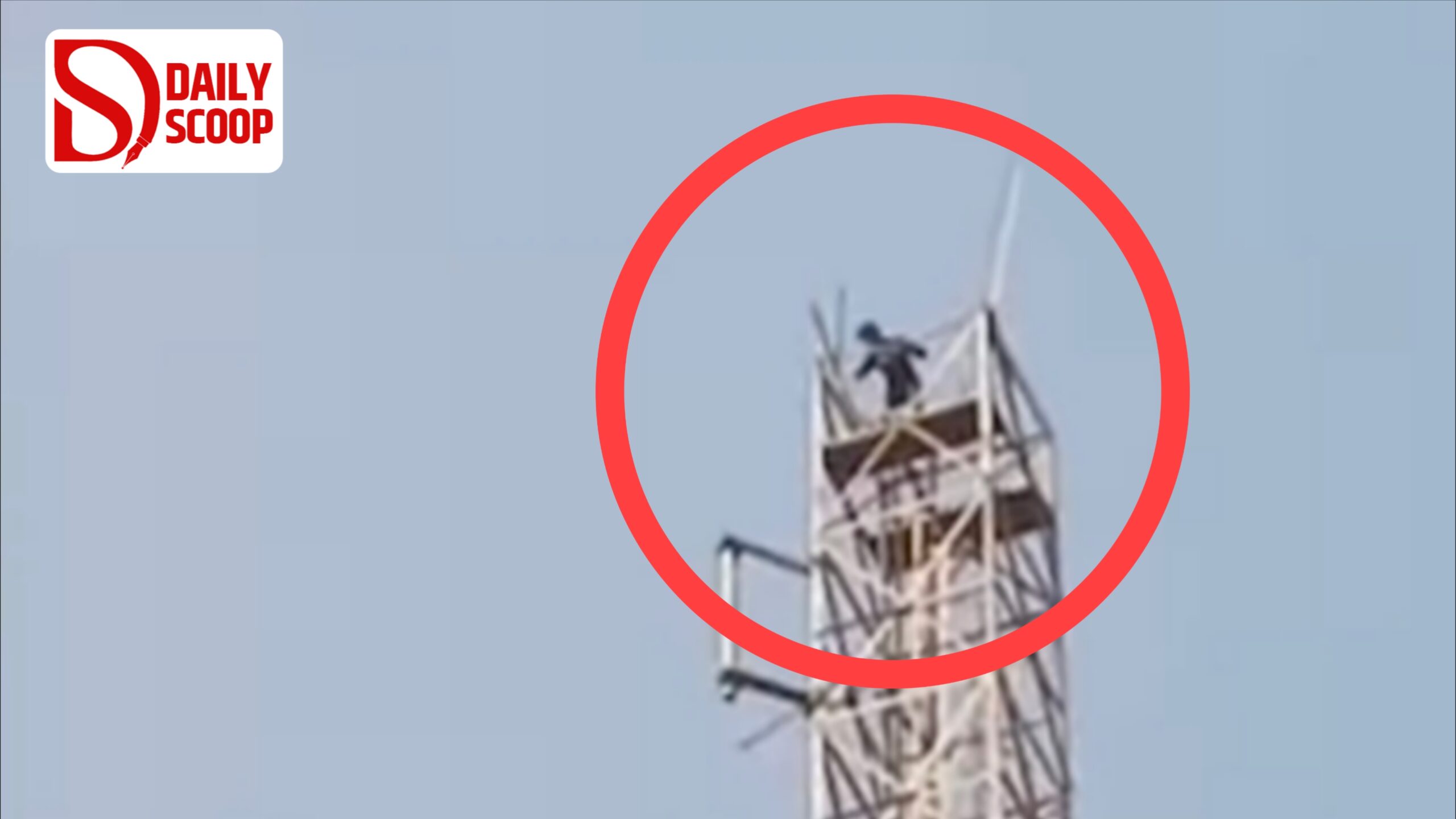 टॉवर के नीचे भीड़, ऊपर युवक और चारों तरफ टेंशन