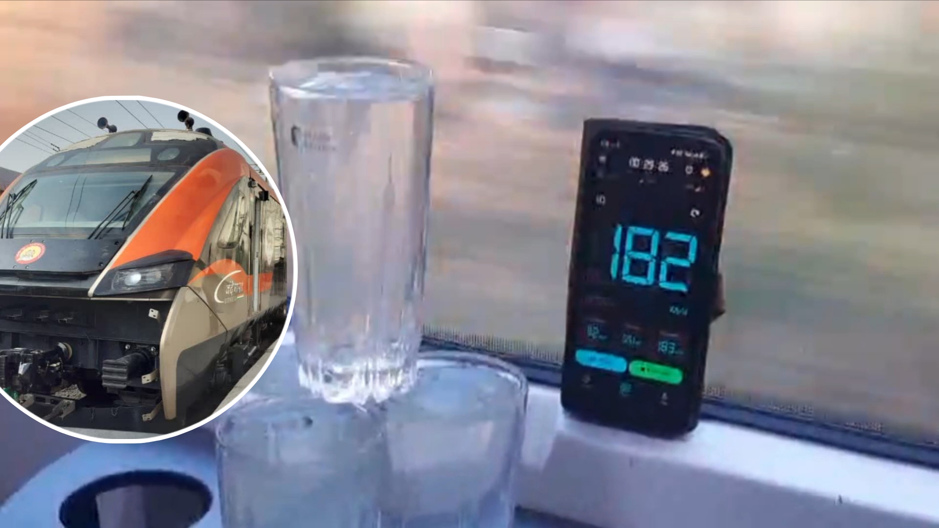 मुख्य आयुक्त रेल सुरक्षा (CRS) जनक कुमार गर्ग की मौजूदगी में ट्रेन का स्पीड ट्रायल किया गया। कोच के अंदर पानी से भरे कांच के गिलासों का पिरामिड बनाकर रखा गया। 182 km/h की रफ्तार पर भी एक बूंद पानी नहीं छलकी, जैसा कि कोटा रेल मंडल के जनसंपर्क अधिकारी द्वारा जारी वीडियो में दिखाया गया।